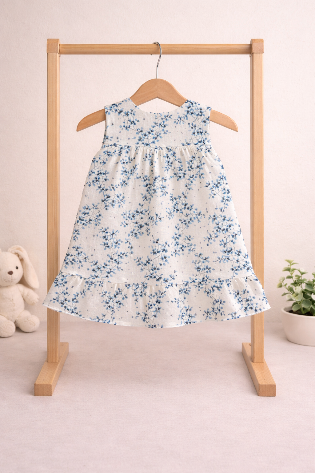Baby Girls Muslin Cotton Sleeveless Frock – Soft floral blue Print, Button Front, Ruffled Hem (0–24 Months)