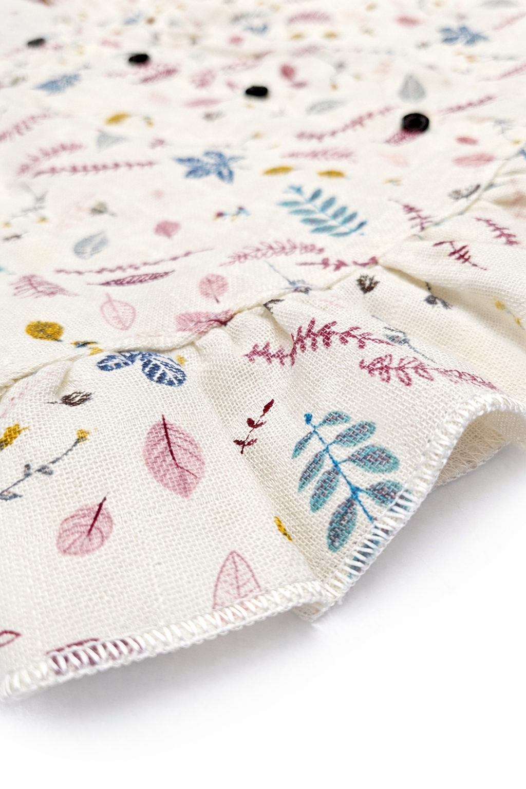 Details: Soft gathers & ruffled hem