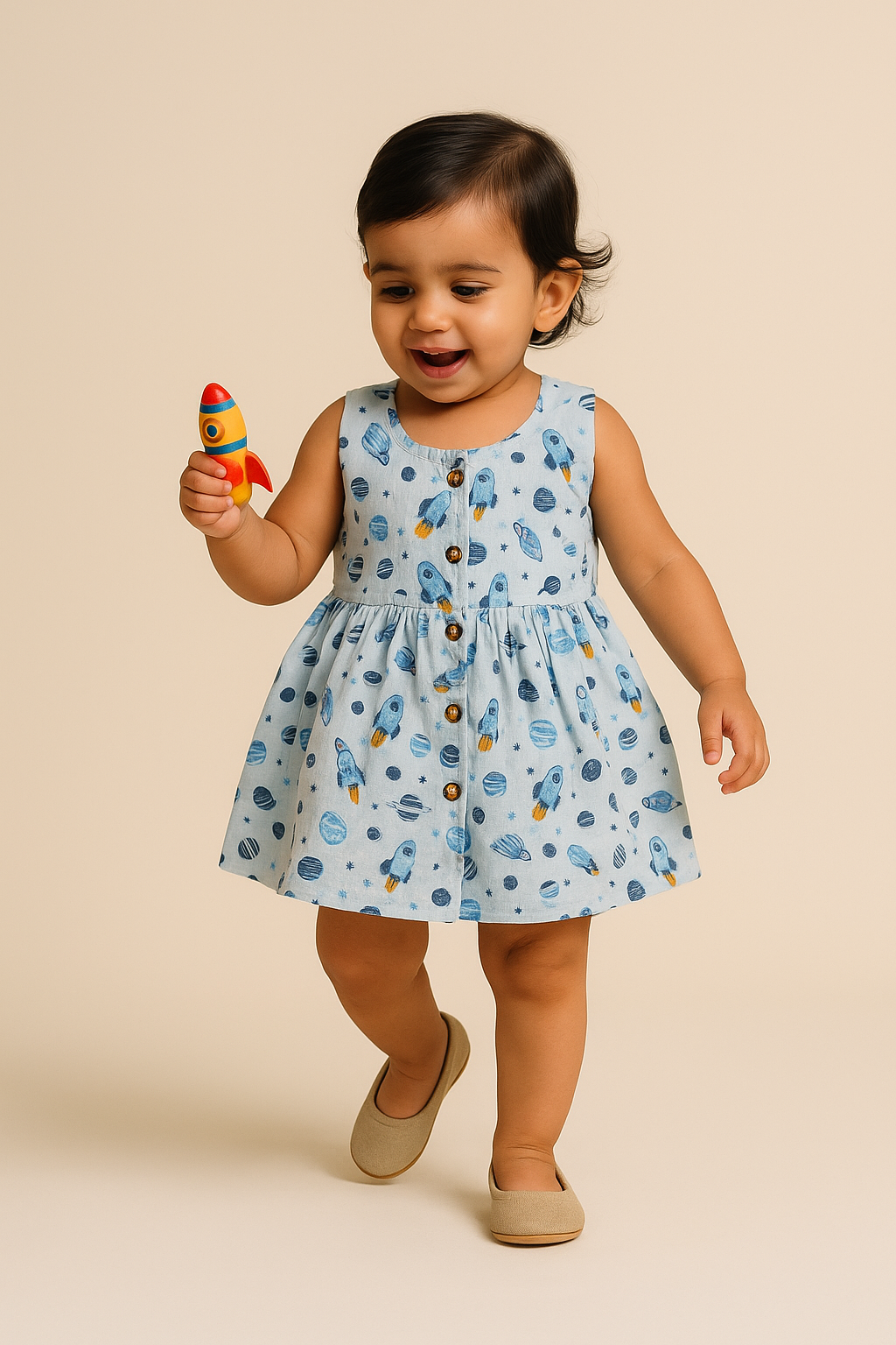 Soft, lightweight, and breathable, it’s perfect for keeping your baby cool and cozy all day. With its gentle fabric and charming design, this frock is ideal for playtime, outings, or special occasions. Safe for sensitive skin and eco-friendly, it’s the perfect blend of comfort and sustainability.
