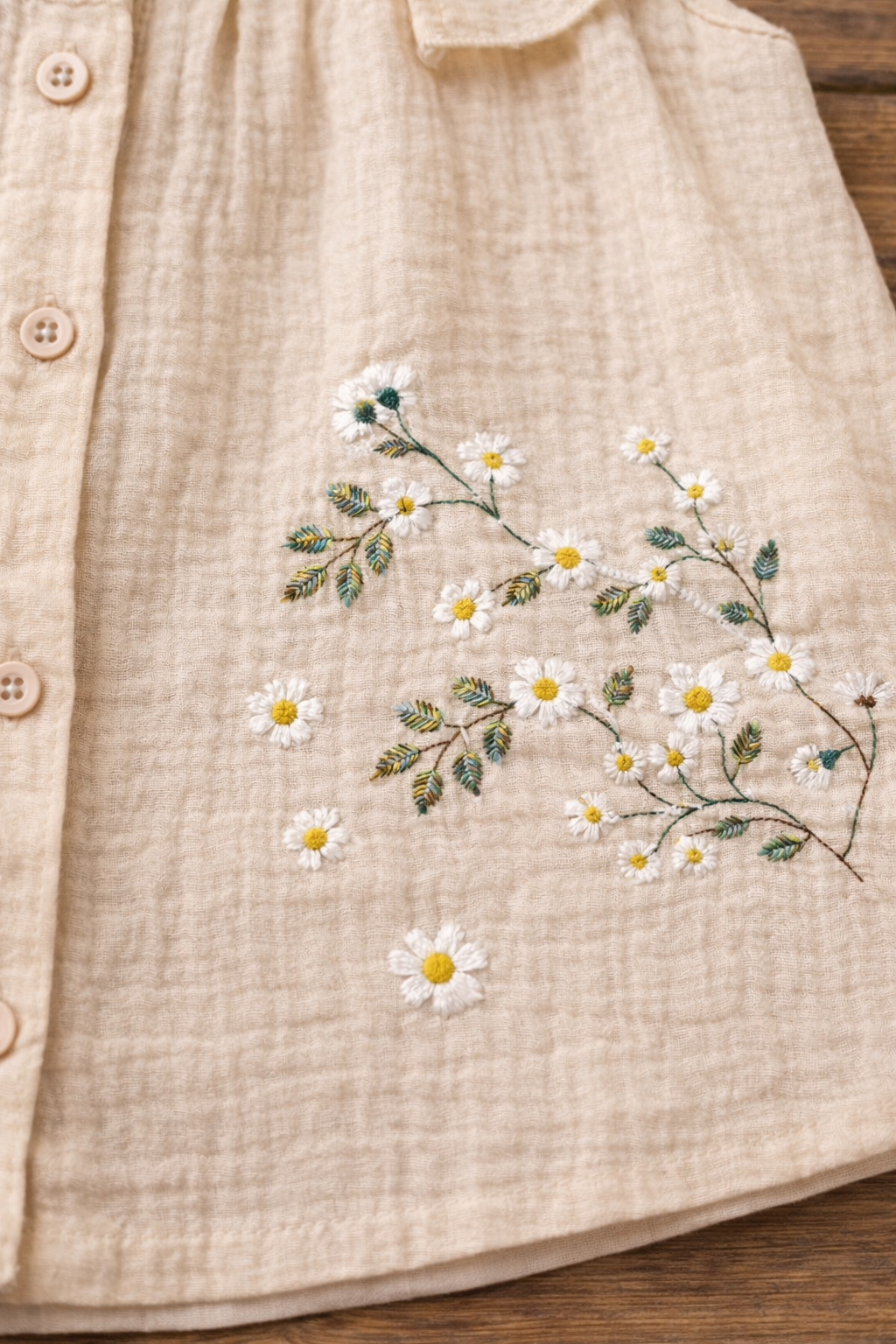 🌸 Elegant Floral Embroidery Detail – Subtle daisy design for a cute look