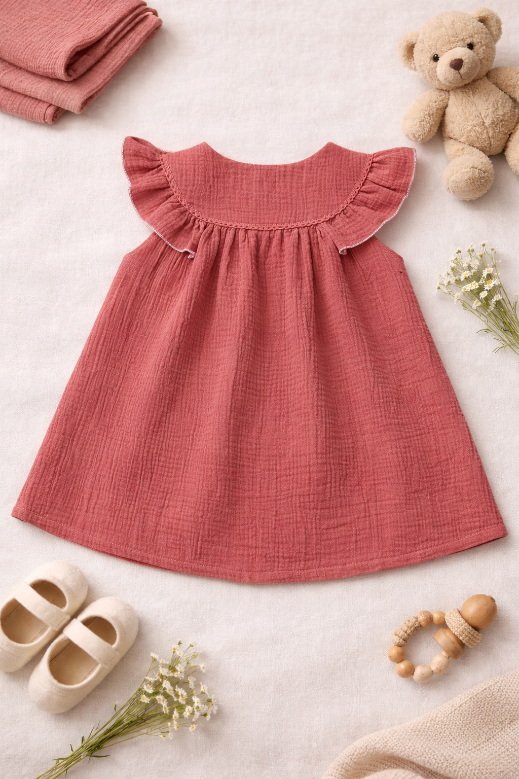 Perfect for summer days, playtime, or gifting, this baby muslin cotton frock for girls offers all-day comfort with a soft, natural look.