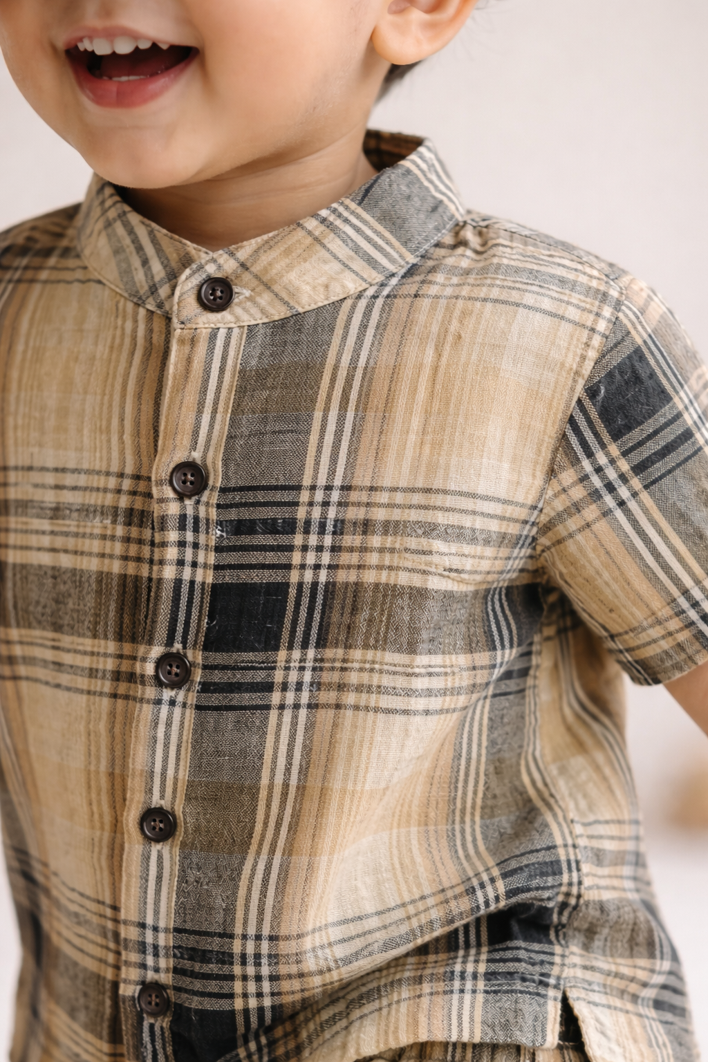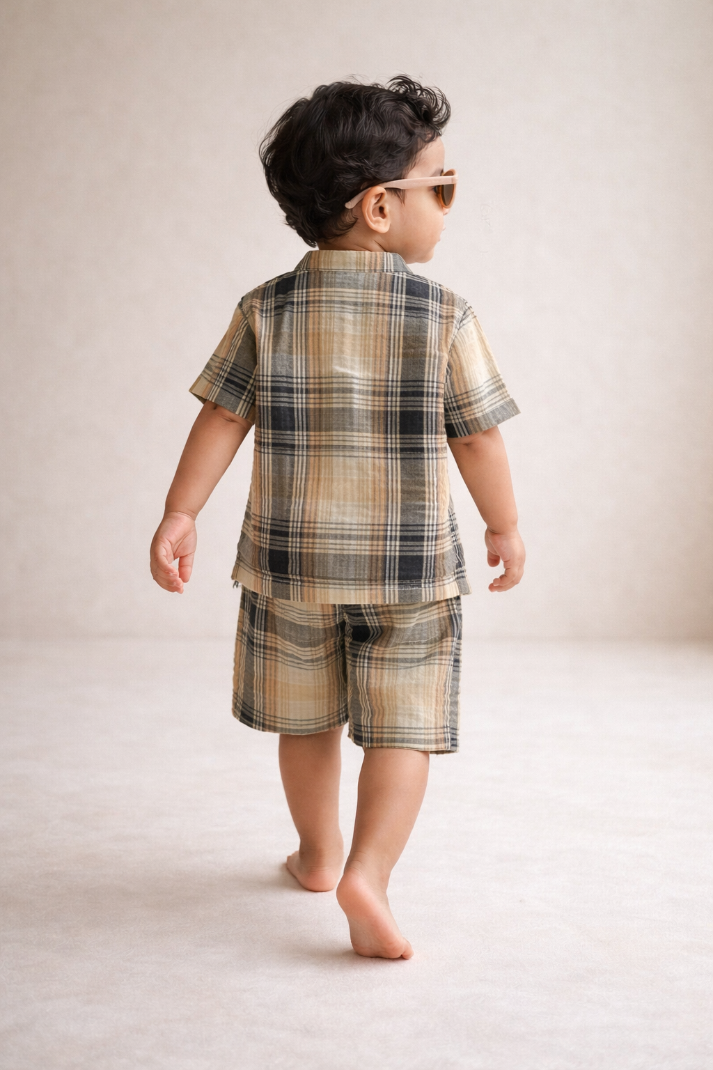 Made from ultra-soft, breathable muslin cotton, this lightweight shirt and shorts set is designed to keep your baby cool, comfortable, and effortlessly stylish. The rich yarn-dyed checks offer depth and durability — never printed, always woven — for a refined, long-lasting finish.