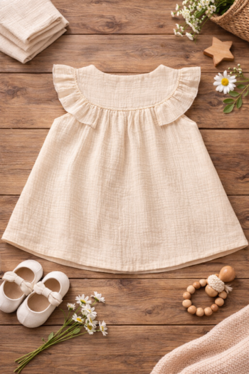 Premium Muslin Cotton Baby girl – Soft Crinkle frock | Summer Breathable Outfit